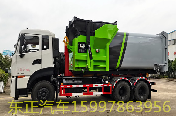 可卸垃圾車帶自卸功能,液壓操作,方便傾倒。該車的箱體部分完全由液壓系統(tǒng)來控制,在平日里可將車載垃圾箱放置到各個垃圾收集站,待垃圾收集滿后,該車可直接開赴至垃圾站,通過液壓系統(tǒng)的操控,可將垃圾車后座上加裝的勾臂放下,掛住站內垃圾箱前端的連接點,將垃圾箱拉至車體的后座上,此時即可啟動車輛,將垃圾運送至垃圾處理站內,進行自卸式傾倒。該車最主要的優(yōu)點就是可一車配多斗,一輛車就可以維持數個垃圾收集站的運轉,效率高,且箱體為密封式設計,不會造成二次污染。