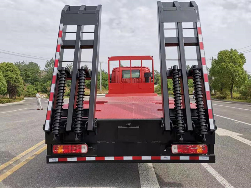 上裝配置橫梁方管、底板花紋板,平板展開可選裝液壓伸縮,爬梯采用雙彈簧加強(qiáng)型設(shè)計,三道筋+雙彈簧加固焊接技術(shù),可選裝液壓爬梯或折疊加長型液壓爬梯,斜坡處帶后支腿
