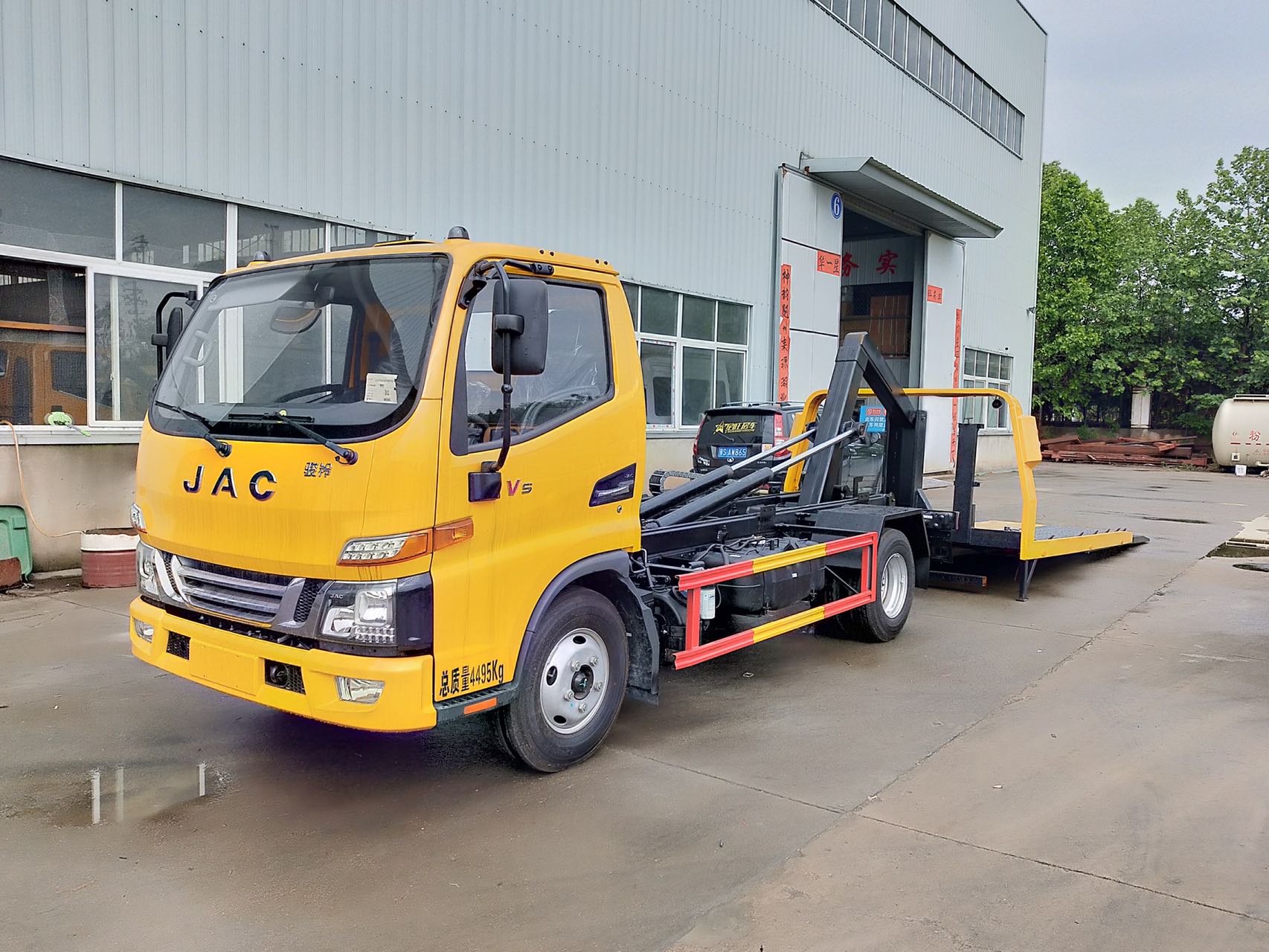 上裝配置:采用沖孔沖壓板或花紋板制成,雙側(cè)聯(lián)動操作裝置,4噸液壓絞盤(25米鋼絲繩),**小車一對,七字抱胎裝置一套,捆綁帶4條,輪胎擋板一對,工具箱一個(gè),后工作燈兩只。