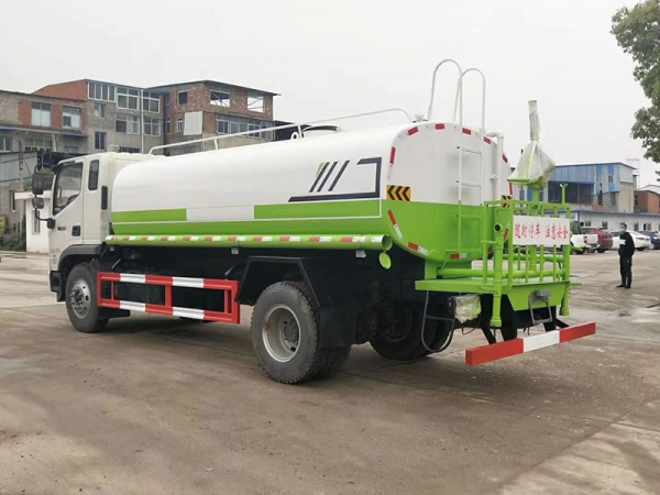 (2)配備專用灑水泵,前噴后灑、側(cè)噴、后工作平臺及灑水高壓炮。灑水泵自吸高度為7米左右,整車灑水寬度15米左右,后工作平臺水炮可調(diào)節(jié)(直沖狀、大雨、中雨、小雨、毛毛雨),有效射程28-35米。整車帶消防接頭、自流閥及自吸功能。附送2根3米水管,1個(gè)爬梯,兩側(cè)及后保險(xiǎn)杠。